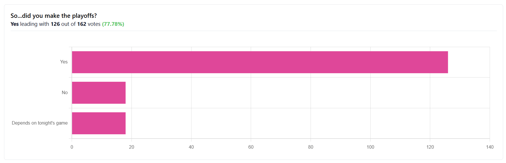 Congratulations to the 77% of you that made the playoffs! And to everyone with their best ball teams in the playoffs.