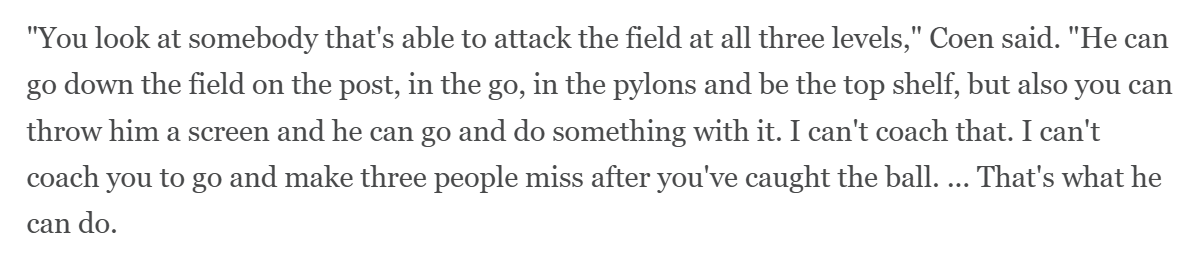 Looking for a late round WR sleeper that’s going to be climbing draft boards? Liam Coen has great things to say about Dyami Brown. [ESPN]