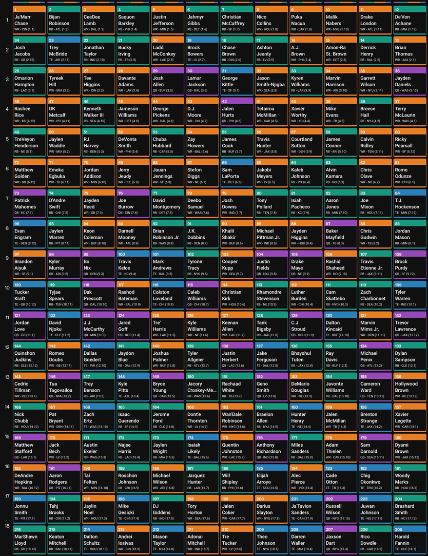 Surprise 2: The drafter in the 1 slot then gets the rare opportunity to stack Chase-Burrow without having to reach but instead of locking in that stack and the round of value, reaches a round to grab Patrick Mahomes. And adds on another WR.