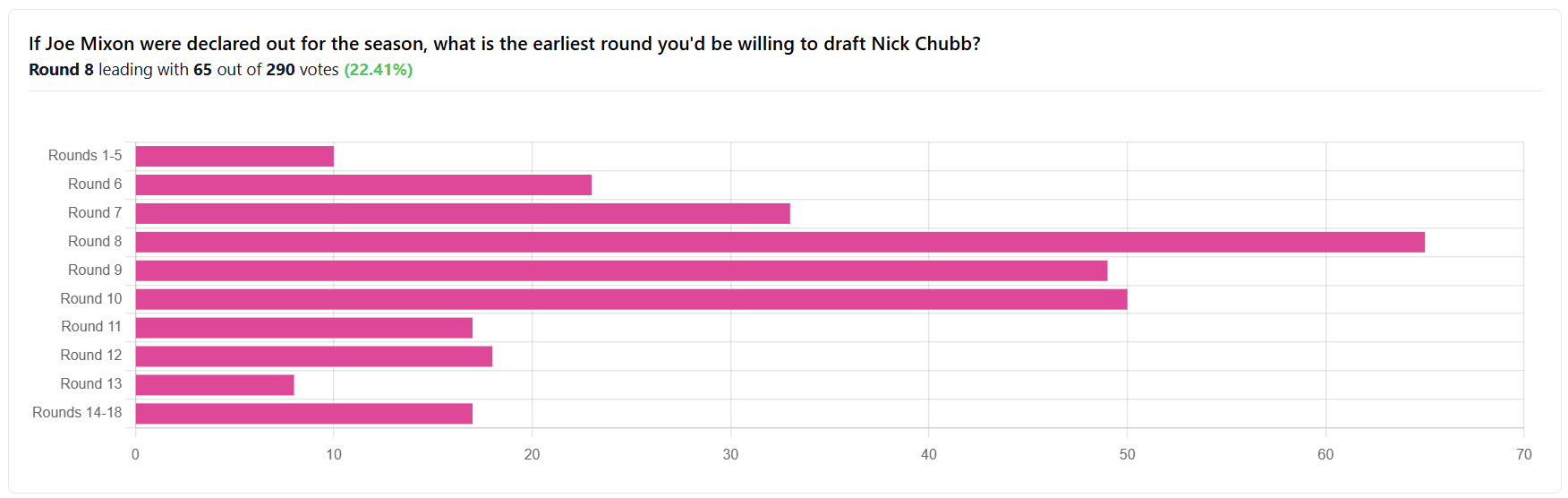 Yesterday’s poll: If Joe Mixon were declared out for the season, what is the earliest round you'd be willing to draft Nick Chubb?