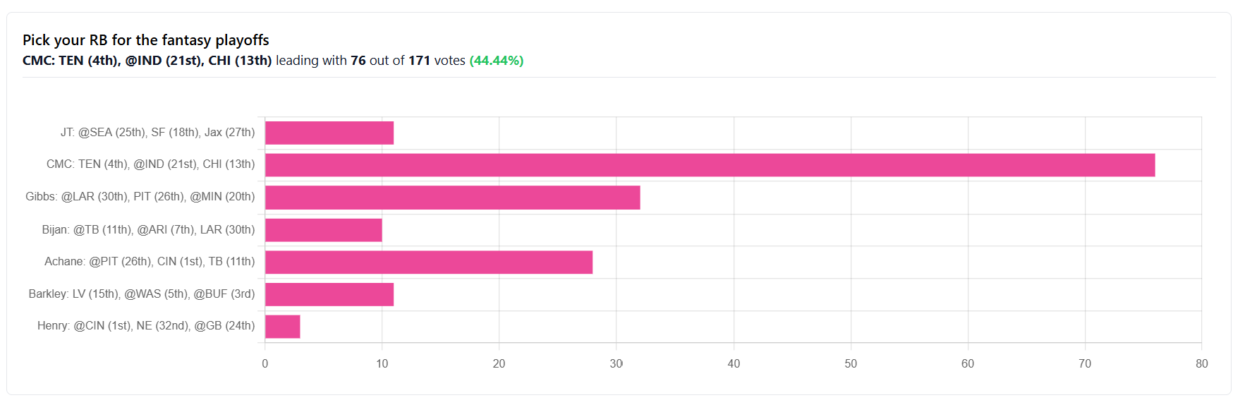 Yesterday’s poll: Pick your RB for the fantasy playoffs