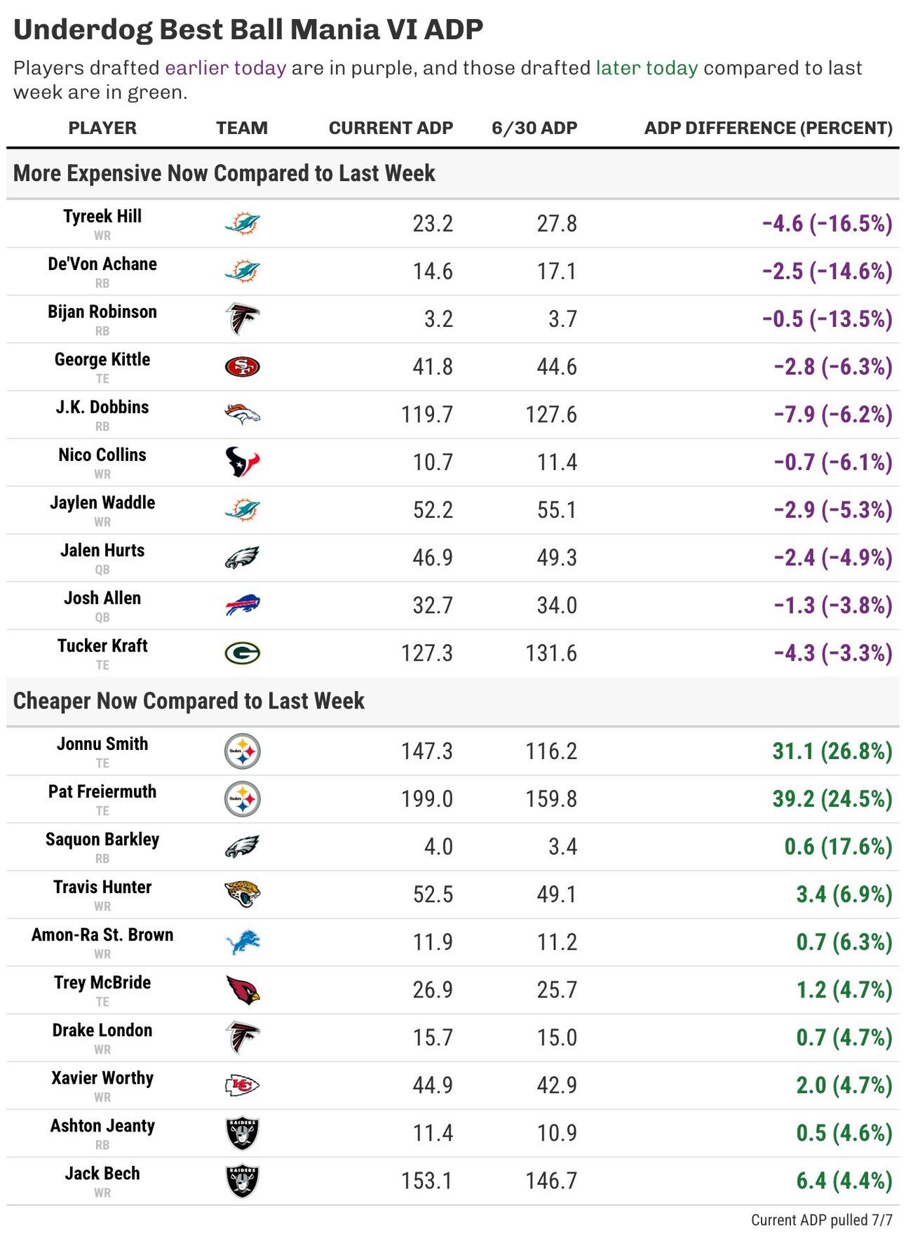 Jonnu Smith & Pat Freiermuth - ADPs take longer to fall than rise so after an event like the Jonnu trade, we have to be patient before being willing to start buying at their new price. We’re not there yet.