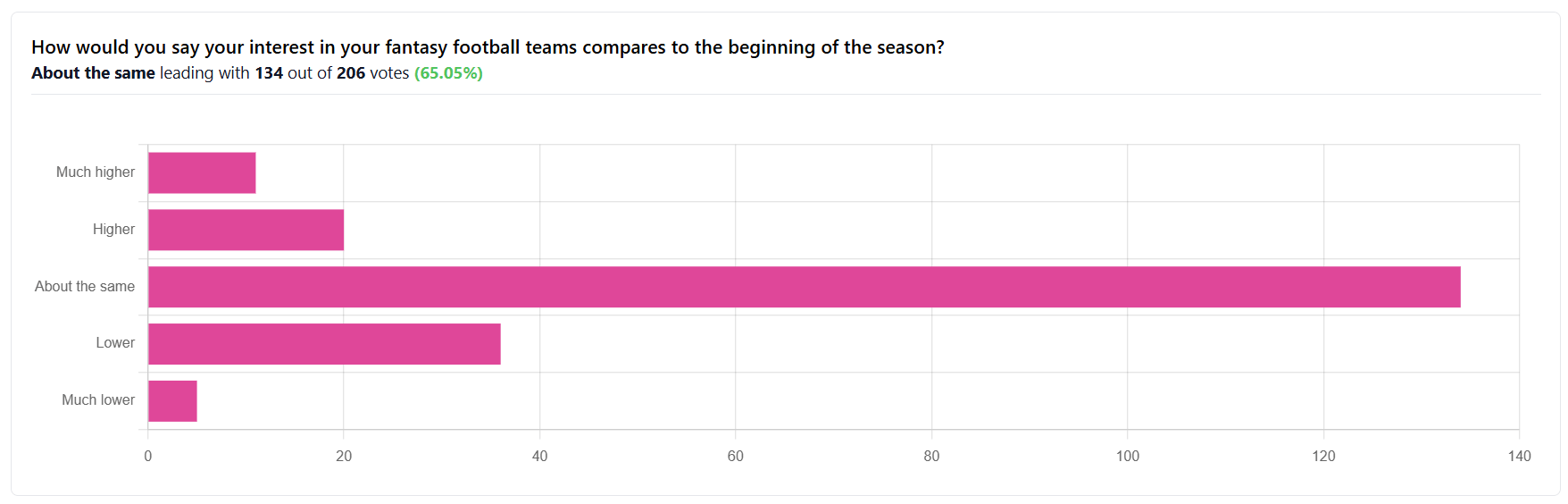 Yesterday’s poll: How would you say your interest in your fantasy football teams compares to the beginning of the season?