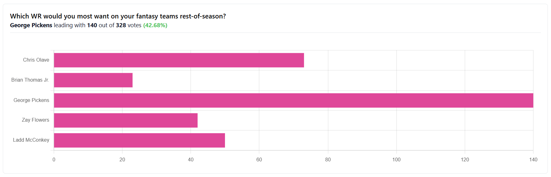 Yesterday’s poll: Which WR would you most want on your fantasy teams rest-of-season?
